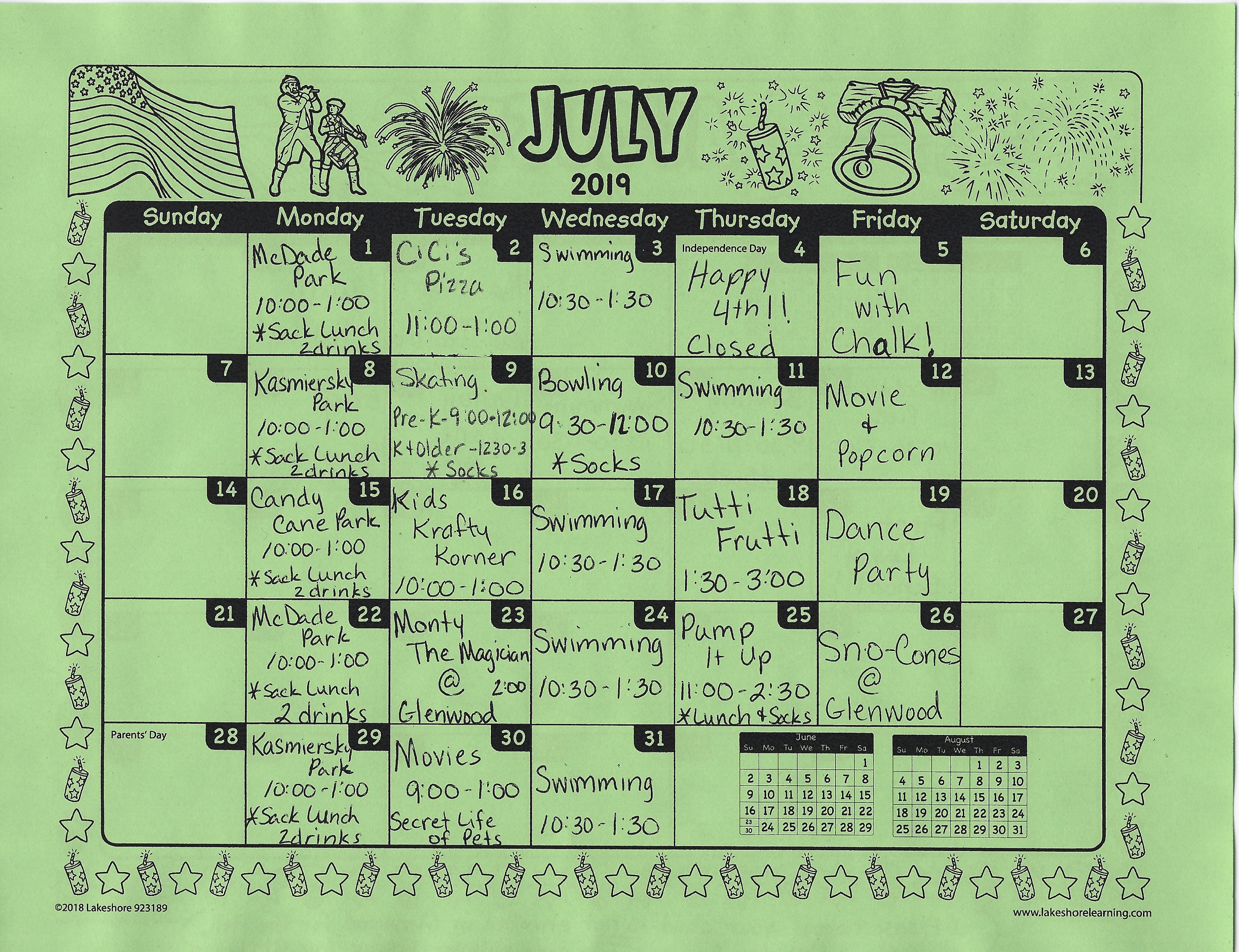 - July, 2019 Field Trips Calendar